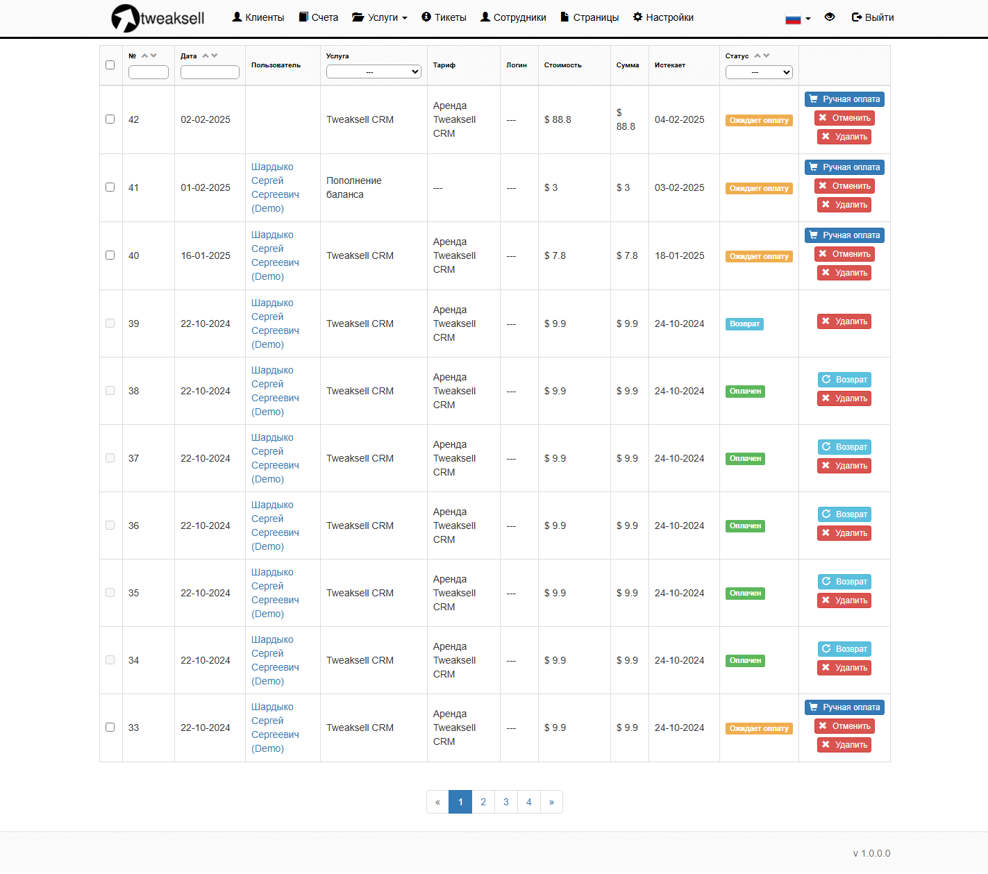 Генерация счетов, контроль оплаты, автоматизация расчета скидок и промокодов.